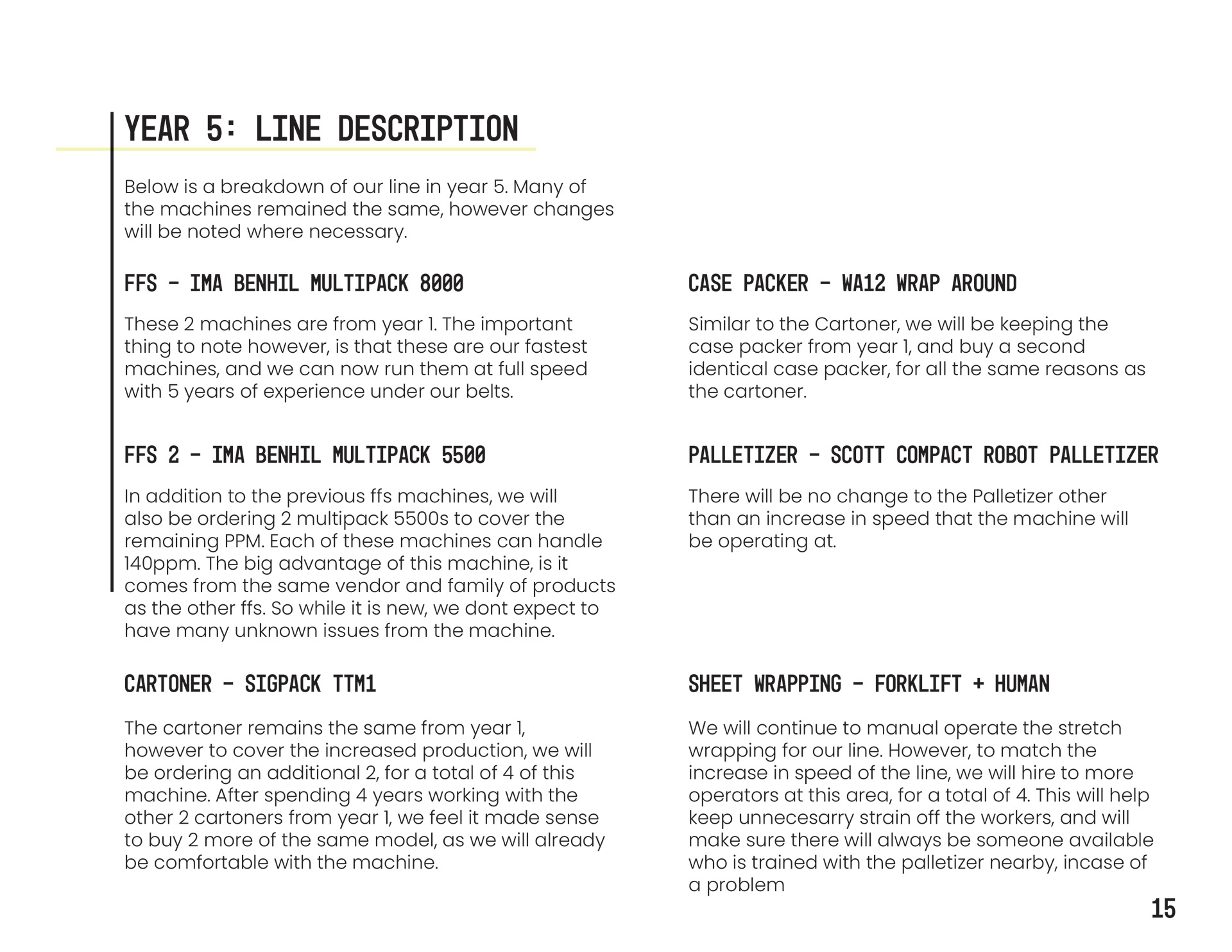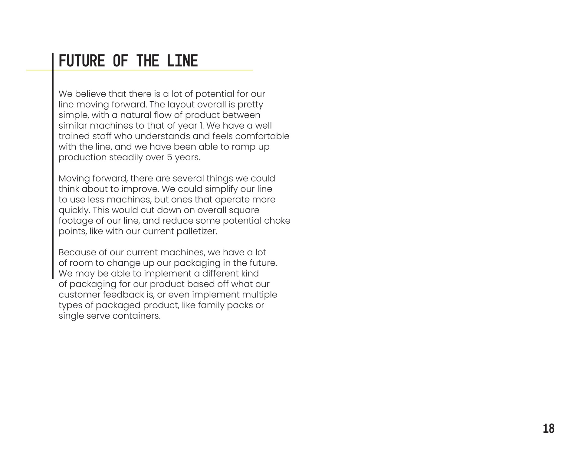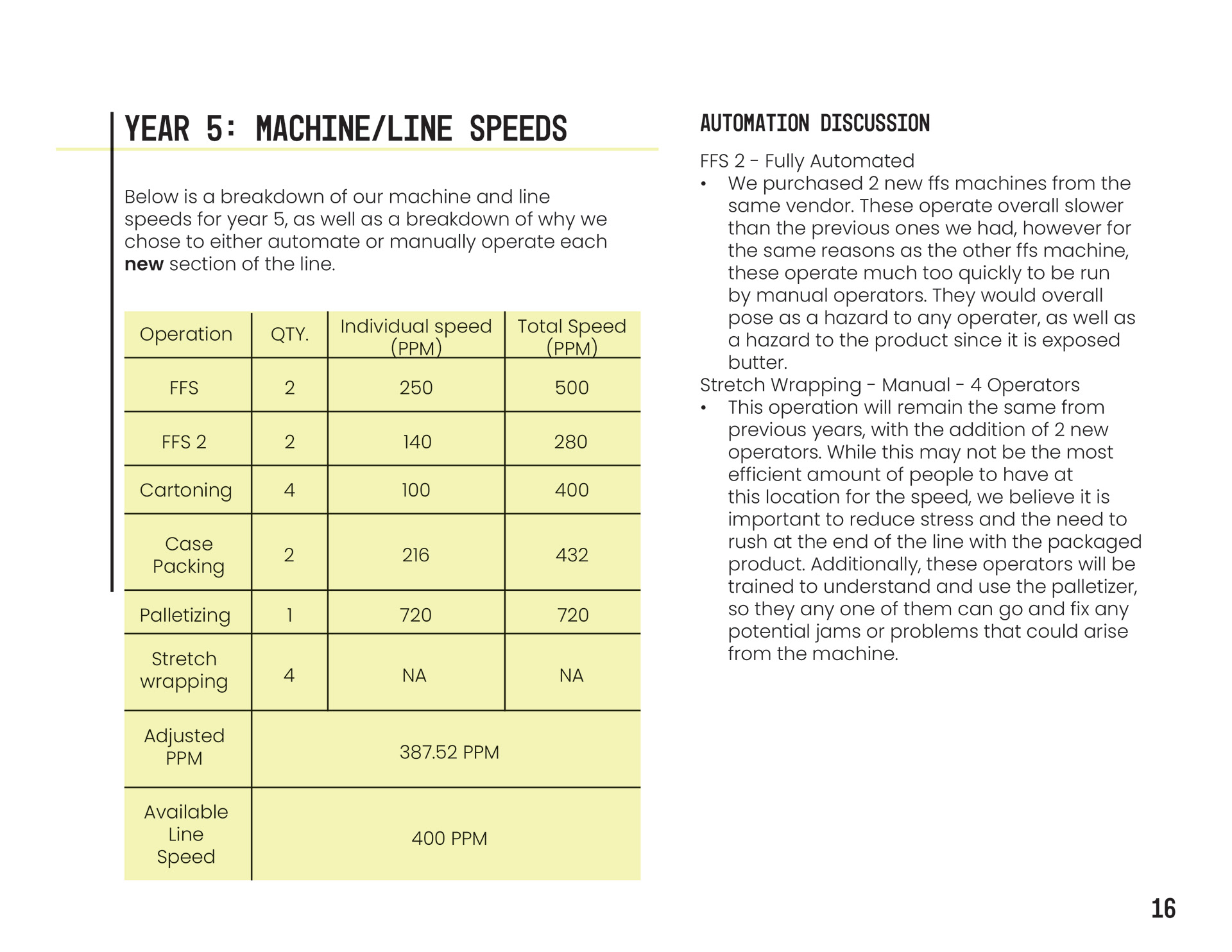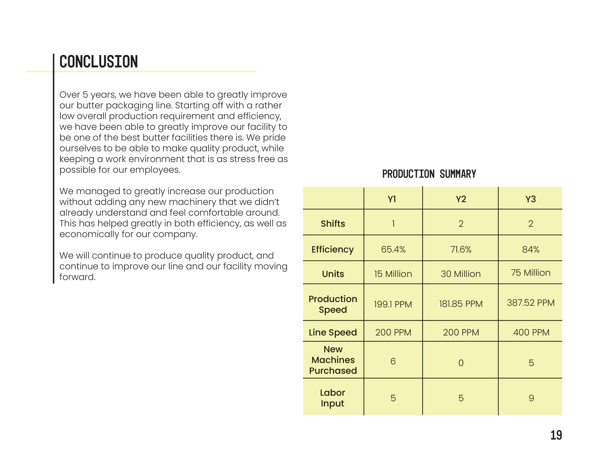 This project was a 2 person group project, where the objective was to make a mock packaging line for a selected product, and a predetermined output, over the course of 5 years.